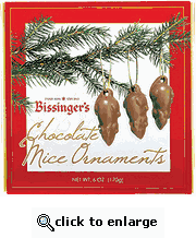 Bissinger's Solid Milk Chocolate Mice Gift features cutest chocolate mice made with the finest premium milk chocolate, all natural, three dimensional Solid Milk Chocolate Mice, gluten free. Christmas Chocolate Mice gift box contains 12 delicious chocolate mice that come with gold cord for decorating holidays. The Chocolate Mice add touch whimsy Christmas celebration and are fun gift for family, friends, business associates, holiday table, and enjoy!